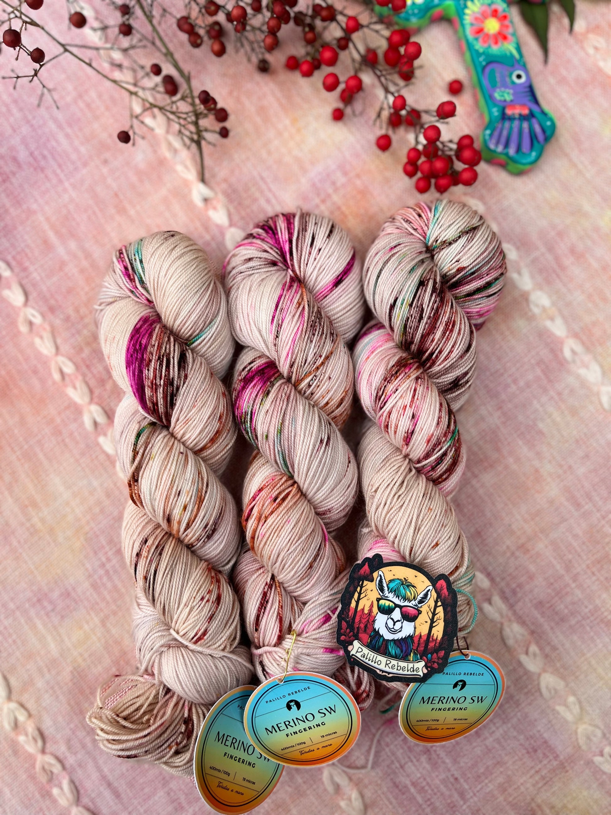 Nuestra Merino Superwash Fingering es como el lienzo perfecto para tus aventuras tejeriles 🎨✨. Imagina una lana que combina suavidad, calidez y resistencia, lista para transformarse en cualquier prenda que sueñes, desde suéteres vibrantes hasta accesorios cómodos y duraderos. .